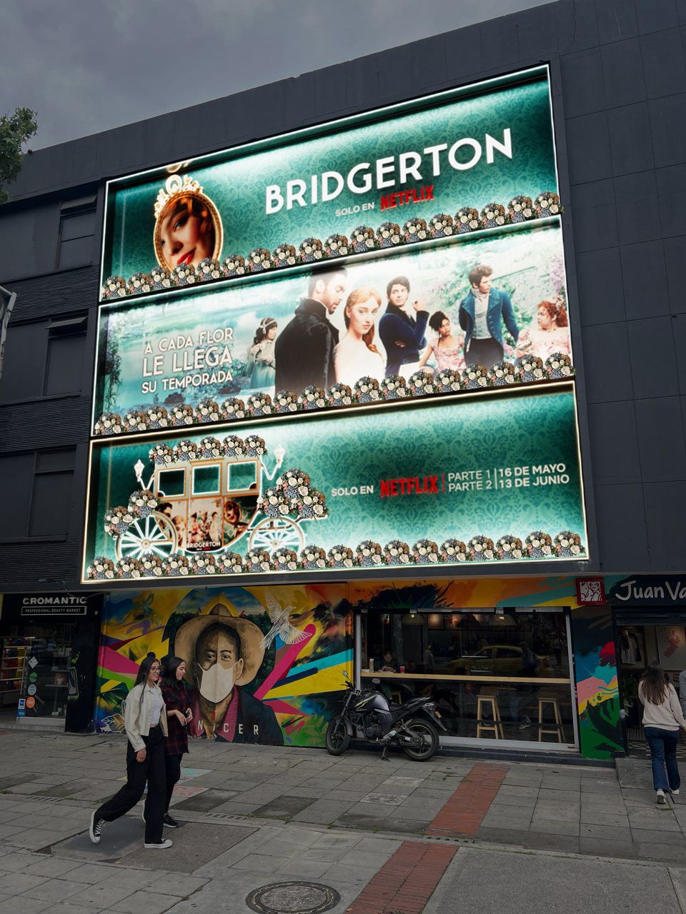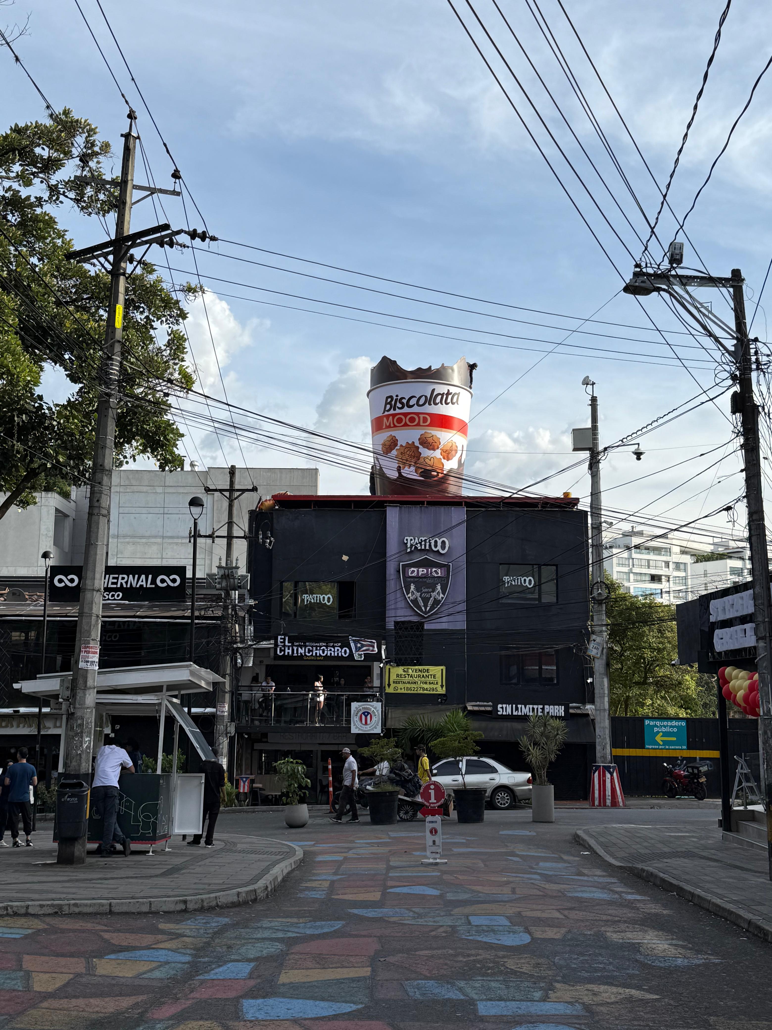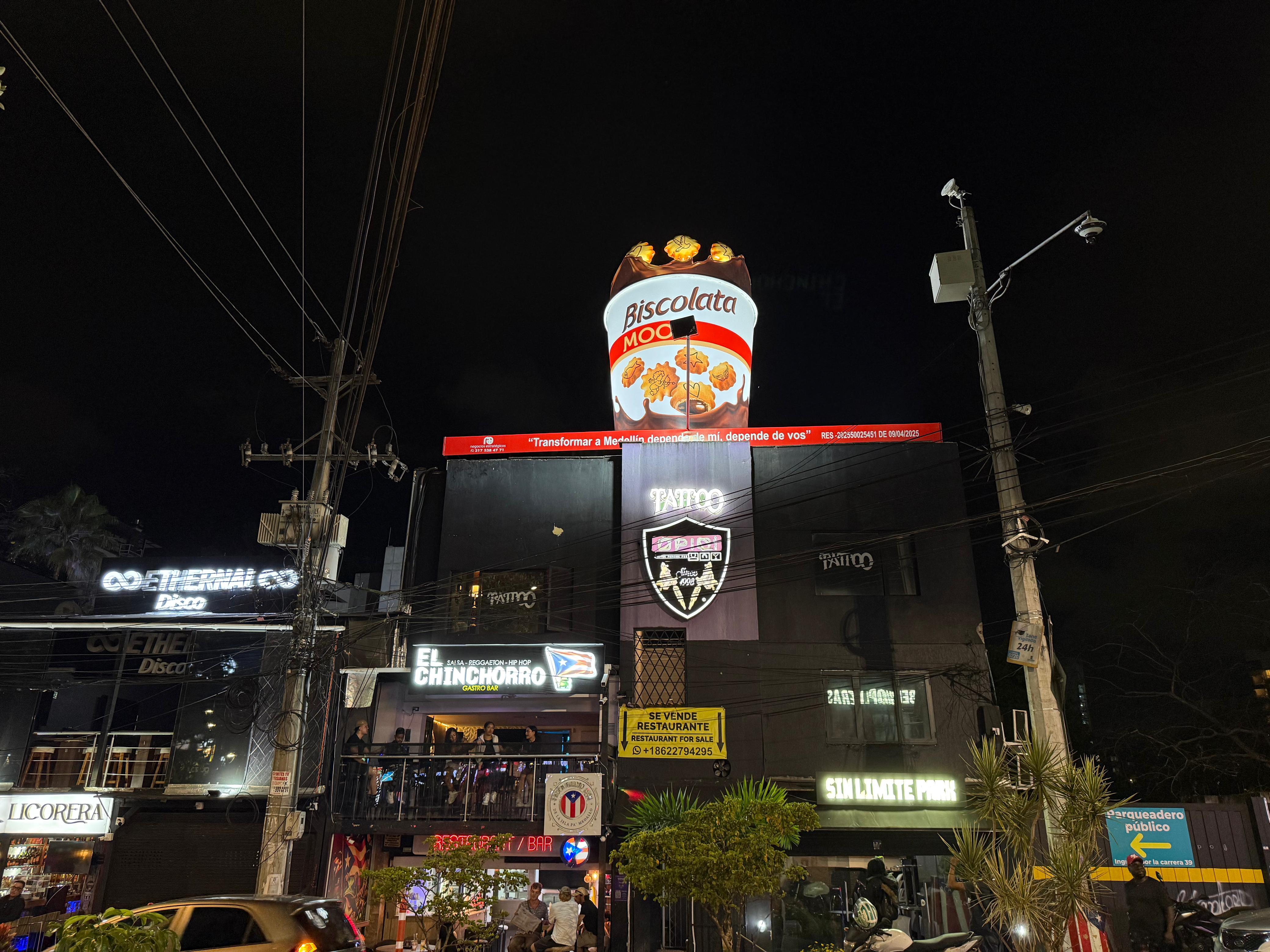 Fachadas y vallas gigantes que dominan la visual.